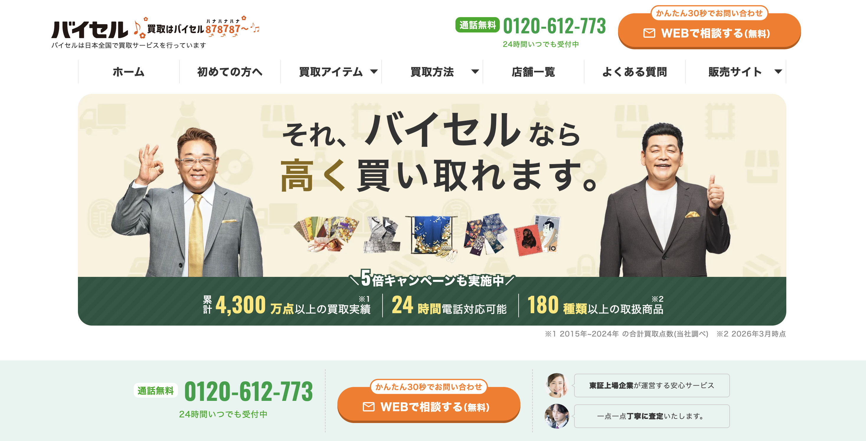 バイセル | 出張料無料24時間受付 | 自宅から売りたい大手の安心感 |