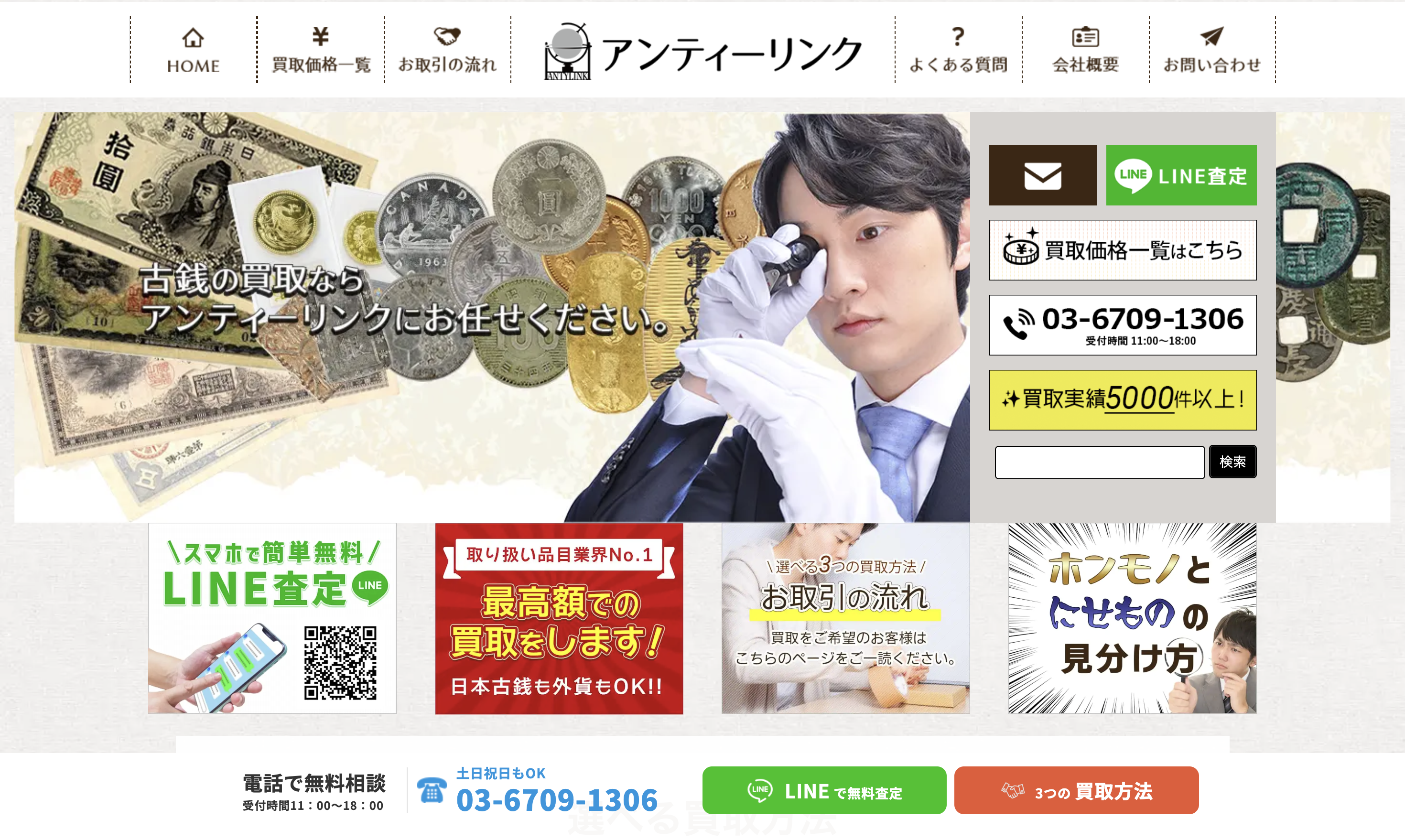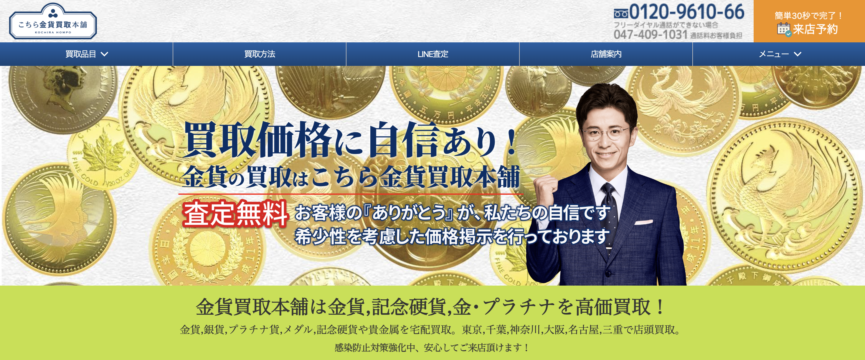 こんな人におすすめ ・古銭専門店に宅配・出張で査定してもらいたい方 ・高額古銭を持っており、実績のある専門店を探している方 ・事前にLINEで相談してから売却を決めたい方 |