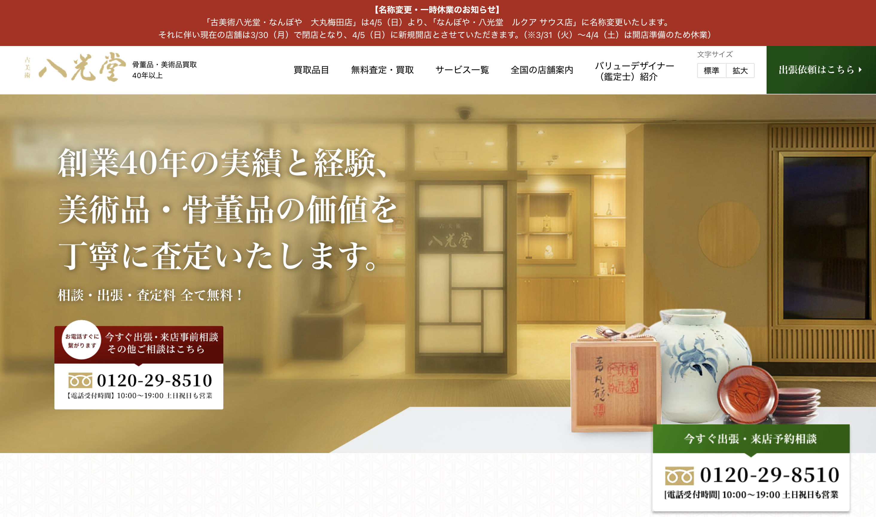 八光堂 | なんば駅徒歩8分自社ビル | 車で大量持ち込み骨董品もある方 |