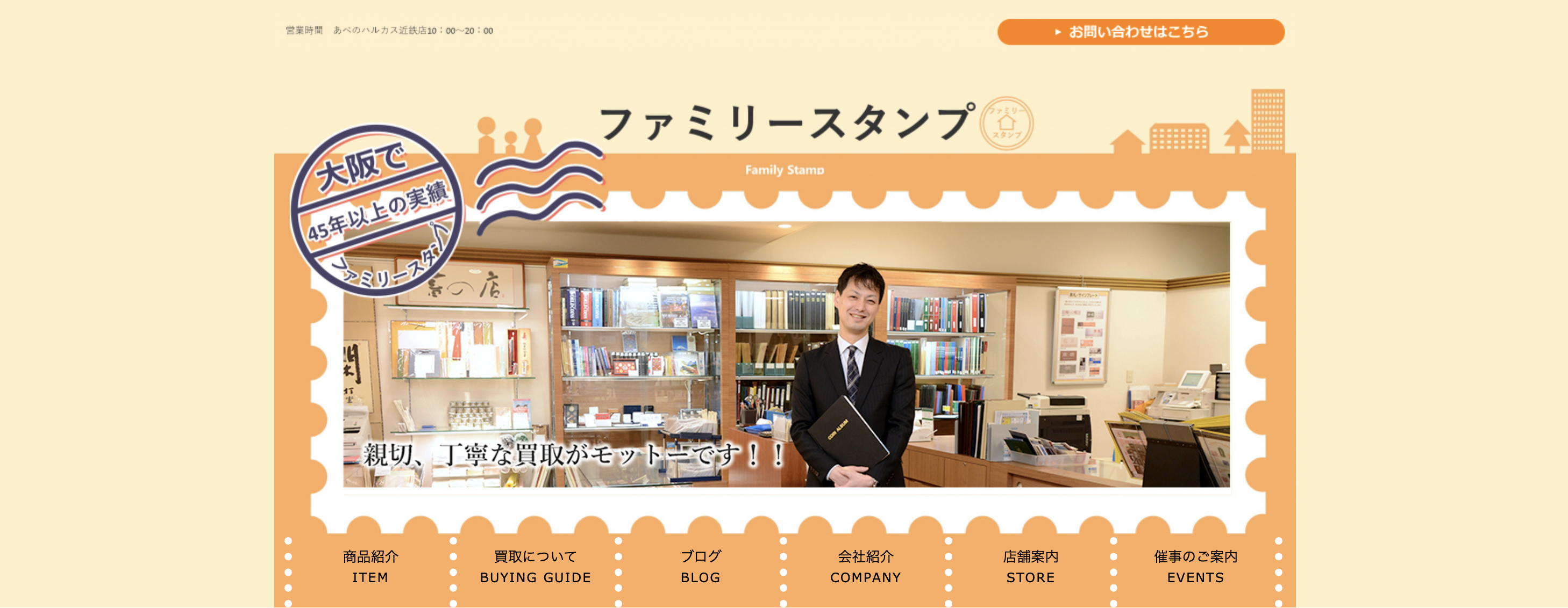 ファミリースタンプは、南大阪で40年の歴史を持つ古銭・切手専門店です。本店は堺市にありますが、日本一高いビルとして知られるあべのハルカス近鉄本店5階にも売場を構えています。百貨店内という安心感は、初めて古銭を売る方にとって大きなメリットです。さらにJNDA(日本貨幣商協同組合)掲載店であることも、専門性と信頼性の証明になっています。