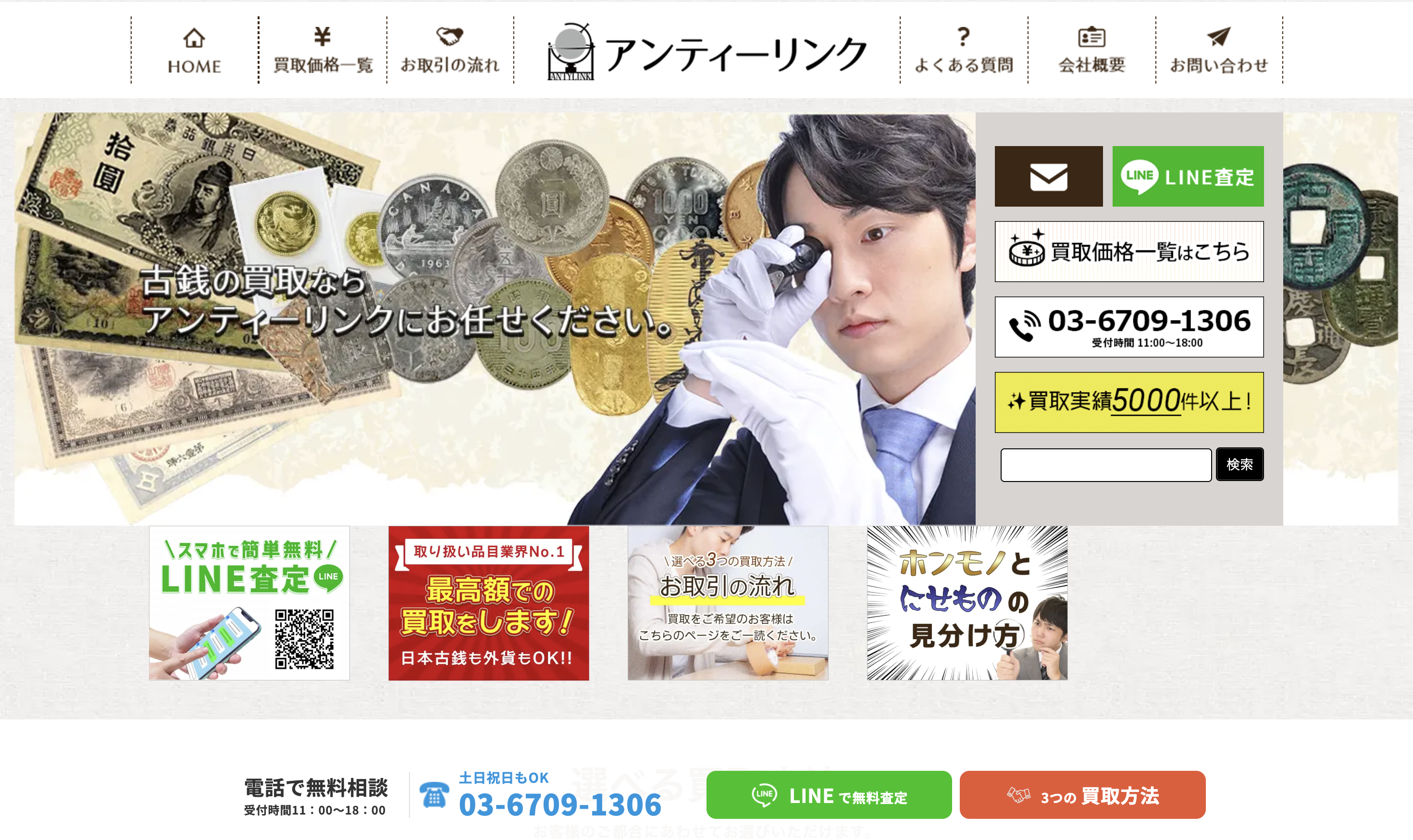 アンティーリンクは2012年創業と比較的新しい専門店ですが、2023年には日本貨幣商協同組合に加盟し、HKCS(香港)やTICCといった国際的なコインショーへの出展実績もあります。新しいながらも、業界での信頼を着実に積み上げています。買取方法は店頭・郵送・出張の3つに対応していますが、店頭は予約制なので訪問前に連絡が必要です。郵送の場合、買取金額1万円以上なら送料を負担してもらえますが、1万円未満の場合は買取金額から差し引かれます。(※返送料・振込手数料はアンティーリンク側が負担)池袋駅東口から徒歩12分という立地で、専門店としては比較的アクセスしやすい場所にあります。代表の渡邉博氏が古銭鑑定士として紹介されており、専門性を打ち出しています。