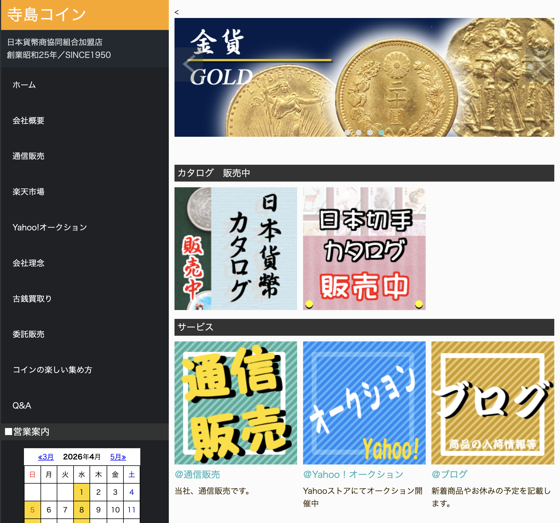 寺島コインは、昭和25年創業という75年以上の歴史を誇る老舗中の老舗で、今回紹介する専門店のなかでも、最も長い歴史を持っています。取扱品目の幅広さも圧倒的で、大判・小判・古銭・穴銭・現行貨・記念貨・金銀貨幣・紙幣・外国銭・メダル・勲章まで、ほぼすべてのジャンルに対応しています。「何を持っているかよくわからないけど、とりあえず全部見てほしい」という方にとって、これほど心強い専門店はないでしょう。